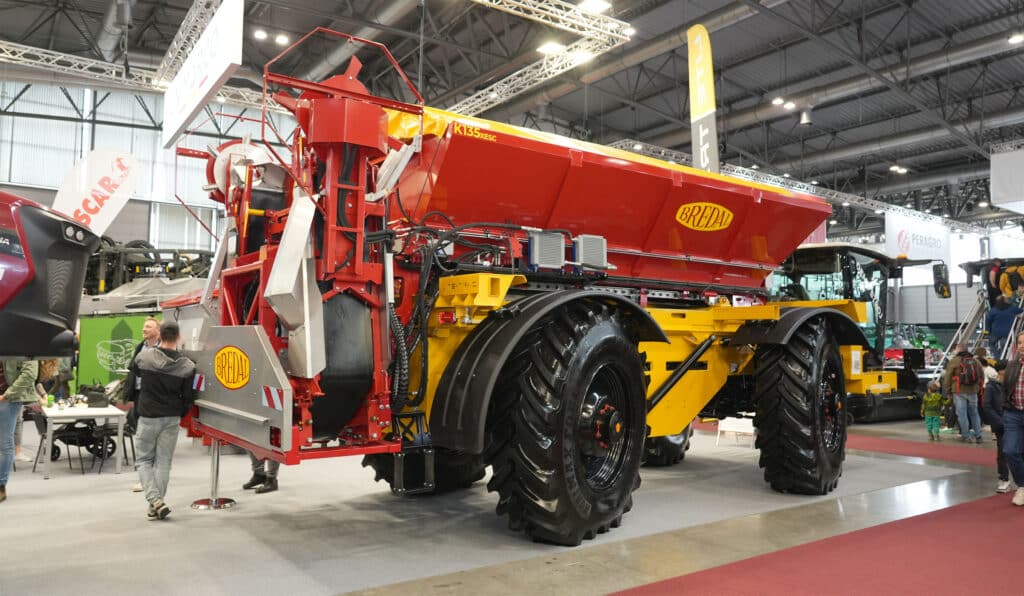 – Zamontowany jest na nim rozsiewacz Bredal K135 XE/SC o pojemności 9,5 m3. Można nim wysiewać nawozy granulowane na szerokości nawet 48 metrów. Jeżeli chodzi o wapno, to maksymalna szerokość wynosi do 30 metrów. Jest to możliwe, bo dwie napędzane hydraulicznie tarcze rozsiewające są zamontowane w odległości 6 metrów od siebie. Nawóz jest na nie podawany szerokimi na 40 cm pasami. Rozsiewacz jest wyposażony w Isobus, system kontroli sekcji oraz wagę – podaje firma Unimarco.