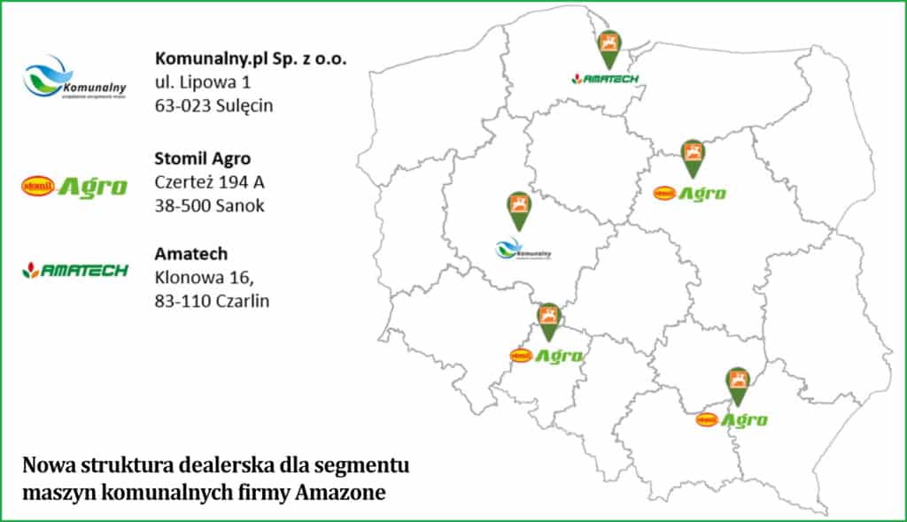 – Kolejną zmianą w działalności naszej firmy obowiązującą od 1 lutego br. jest nowa struktura dealerska dla maszyn komunalnych. Dystrybucją i obsługą takiego sprzętu zajmują się trzy firmy: Amatech, Komunalny.pl oraz Stomil Agro, które będą odpowiadać za sprzedaż, doradztwo techniczne oraz serwis maszyn komunalnych – podaje dyrektor Marek Zieliński.