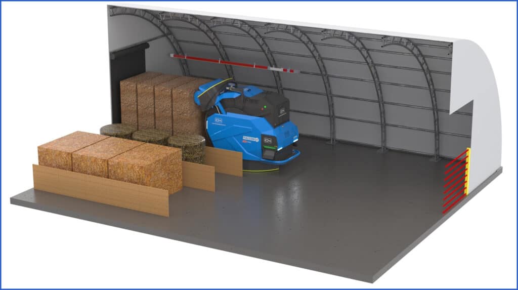 – Falcon pracuje w układzie z kuchnią paszową, która jest specjalnym pomieszczeniem w którym są przechowywane komponenty dawki – dodaje dyrektor firmy Euromilk. – Na kuchnię paszową można zaadaptować istniejące w gospodarstwie obiekty typu starsze obory czy wiaty. Można także ją wykonać na bazie np. hali namiotowej. Istotne jest to, aby była płaska podłoga, wszak urządzenie porusza się po umieszczonej w posadzce na głębokości ok. 1 cm pętli indukcyjnej.
