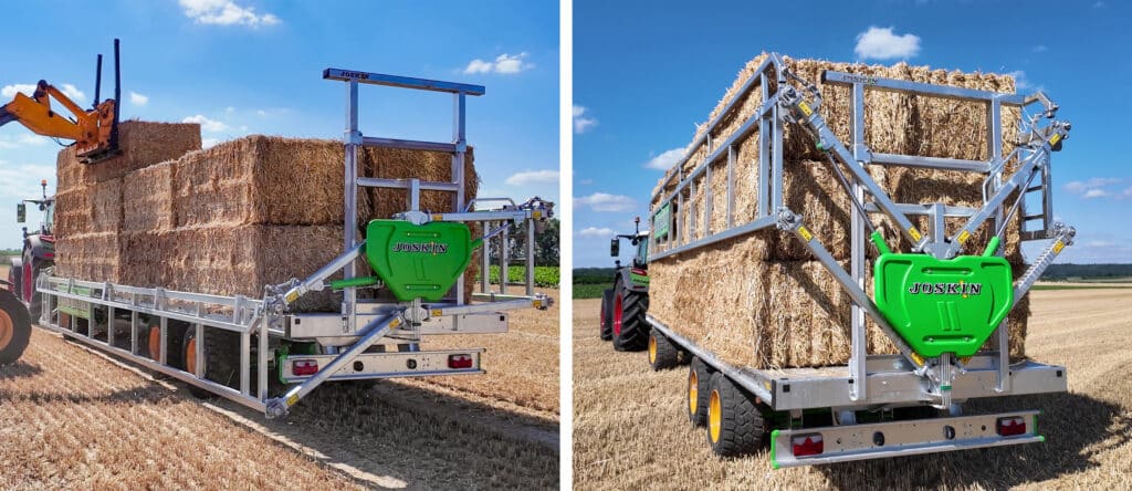 Ręcznie spinanie pasami bel przewożonych platformami jest czasochłonne. Dlatego na popularności zyskują rozwiązania wykorzystujące hydraulicznie ustawiane barierki. Firma Joskin taki system stosuje w platformach Wago o długości 8 i 10 metrów. To nie wszystko, bo ten producent zdecydował się rozszerzyć rozwiązanie o zintegrowane z barierkami przegubowe przedłużenia. Dzięki temu ładunek jest jeszcze lepiej zabezpieczony podczas transportu.