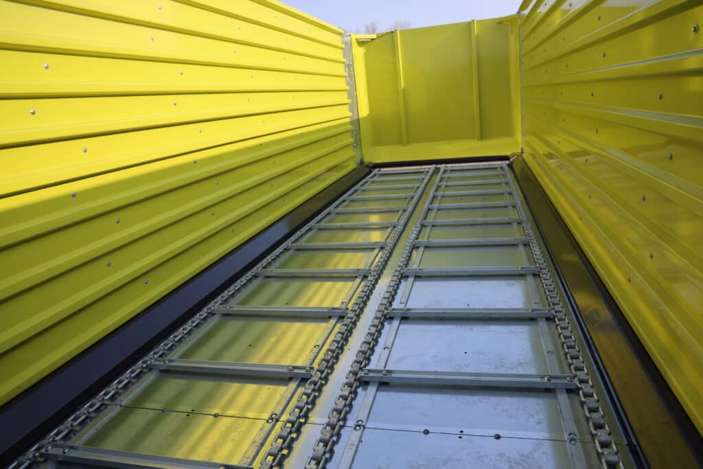 Skrzynia ładunkowa ma 8,60 m długości oraz 2,25 lub 2,38 m szerokości. Jej konstrukcja została zaprojektowana tak, aby rozszerzała się ku tyłowi, co zapobiega zaklinowaniu się transportowanego materiału. Zastosowano również ruchomą przednią ścianę, która po napełnieniu skrzyni odchyla się do przodu, zwiększając przestrzeń załadunkową. Element ten wspomaga także rozładunek, zmniejszając obciążenie przenośnika łańcuchowego w jego początkowej fazie. Dzięki ażurowej konstrukcji operator może kontrolować proces załadunku lub wyładunku
