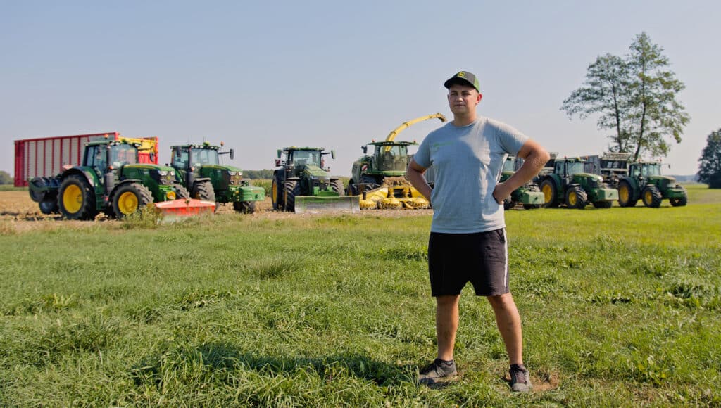 W tym gospodarstwie pierwszy John Deere pojawił się w 2006 roku. Był to model 6420. Obecnie w parku maszynowym znajduje się aż dziesięć ciągników John Deere, z tego dwa dołączyły do floty w tym roku. To modele 6M 155 oraz 8R 370.