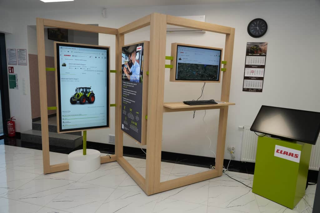 Wchodząc do budynku, uwagę przykuwa Digital Corner – strefa poświęcona rolnictwu precyzyjnemu. Kalchem jest pierwszym w Polsce dealerem firmy Claas, który uruchomił tego typu przestrzeń. Rozwiązanie to jest unikalne także w skali europejskiej – obecnie funkcjonuje jedynie w kilku krajach.