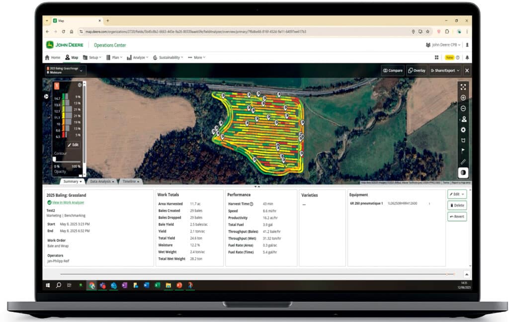 Teraz nawet zza biurka będzie można ocenić ile dana prasa czy prasoowijarka John Deere wykonała bel, gdzie się one znajdują, jaka była wilgotność zebranego materiału, ile siatki wykorzystano na ich owinięcie, a nawet ile było załączonych noży tnących. John Deere podniósł bowiem swoje maszyny na wyższy poziom i zsynchronizował pozyskiwane przez nie dane z platformą John Deere Operations Center. To rozwiązanie, idealne dla usługodawców, będzie szeroko omawiane na targach Agritechnica 2025, które starują już za kilka dni.