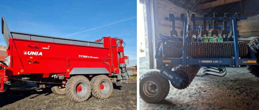 W dniu 8 kwietnia w Strachocinie koło Stargardu (woj. zachodniopomorskie) licytowane będą dwie maszyny rolnicze. Pierwszą z nich jest pochodzący z 2023 roku rozrzutnik obornika Unia Tytan 13 TD Premium. Wartość maszyny oszacowano na 170 000 zł, natomiast cena wywoławcza – stanowiąca 75 proc. wartości – wynosi 127 500 zł. Unia Tytan 13 TD Premium to rozrzutnik o ładowności 10 ton, wyposażony w pionowy, dwuwalcowy adapter.