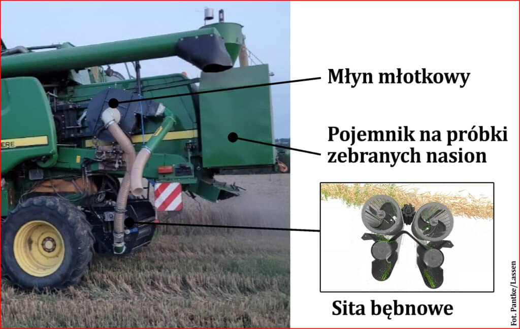 Nawet kombajn zbożowy może stać się narzędzie do walki z nasionami chwastów. Takie możliwości daje system Seed Select opracowany przez firmę Zürn Harvesting przy współpracy z Samuelem Pantke z Uniwersytetu Technicznego w Dreźnie. Wykorzystuje on zamocowane za koszem sitowym kombajnu – w jednym module – dwa obrotowe sita bębnowe. Kierowane są do nich nasiona chwastów, podczas gdy słoma i plewy przechodzą nad bębnami. Pozyskany w taki sposób materiał jest rozdrabniany w młynie młotkowym, przez co traci zdolności do kiełkowania. Na koniec jest rozrzucany na polu. Dzięki niewielkim wymiarom i modułowej konstrukcji, system Seed Select można łatwo dostosować do różnych kombajnów zbożowych bez zakłócania funkcjonującego w nim systemu czyszczącego. Jeżeli chodzi o zapotrzebowanie mocy, to układ w zależności od warunków zbioru, potrzebuje od 20 do 40 kW energii.
