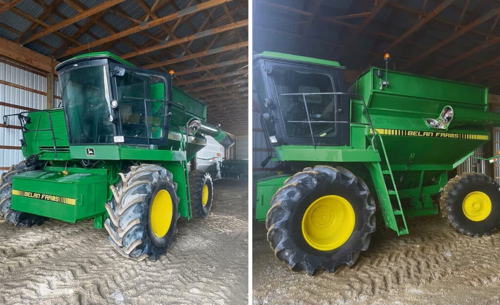 Stary, wyeksploatowany kombajn zbożowy nie musi od razu trafić na złom. Na farmie Belan w kanadyjskiej prowincji Ontario taką maszynę przerobiono na samojezdny wóz przeładunkowy, który jest wykorzystywany do przeładunku ziarna na samochody ciężarowe. Wykonuje też inne zadania.