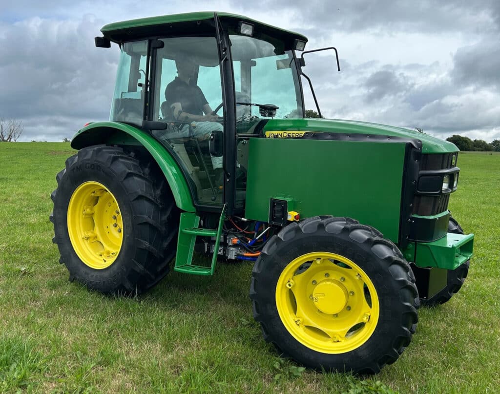 Irlandzka spółka Bord na Móna (BNM) zajmująca się odtwarzaniem zdegradowanych torfowisk, potrzebowała ciągnika elektrycznego, który nie tylko byłby w stanie wykonywać takie zadania jak nawadnianie i to w trudno dostępnych miejscach, ale miałby też służyć jako źródło zasilania dronów. Projekt zrealizowała dla niej firma Hibra Design, która zdecydowała się na przebudowę traktora John Deere 5070M, wymontowując z niego silnik diesla i zastępując go elektrycznym motorem oraz akumulatorem litowo-jonowym.