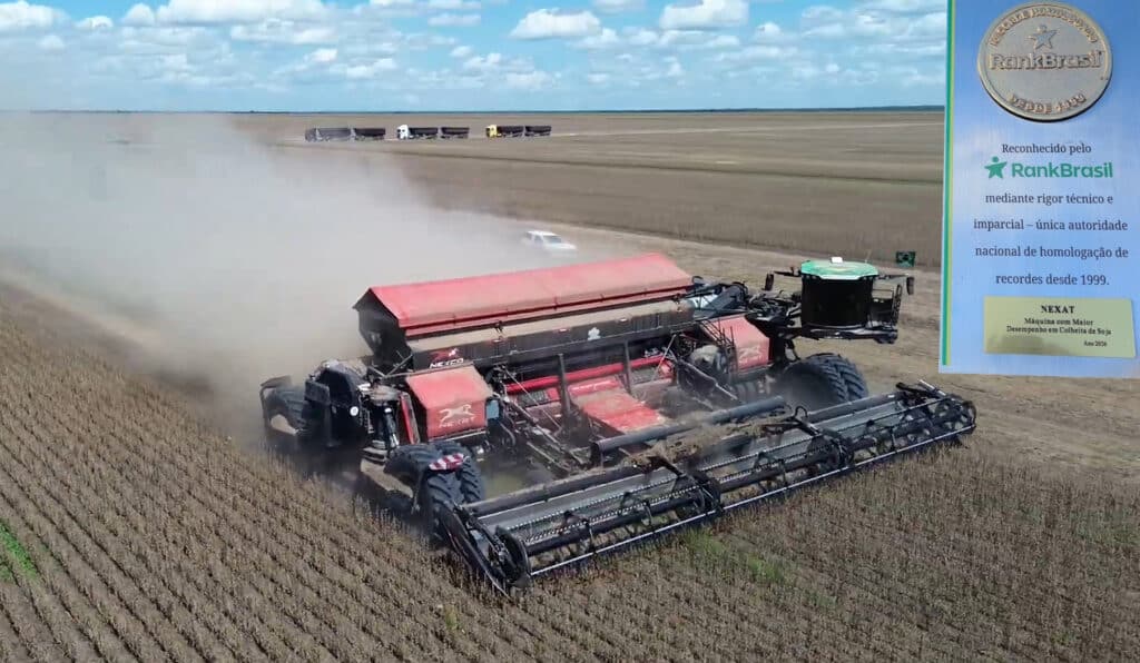 Nośnik Nexat potwierdził swoje nieprzeciętne możliwości. Producent maszyny poinformował, że w Brazylii ustanowiono nim rekord świata w ośmiogodzinnym zbiorze soi. Udało się wymłócić 637,76 tony ziarna, co oznacza że co godzinę przechodziło przez maszynę niemal 80 ton soi!