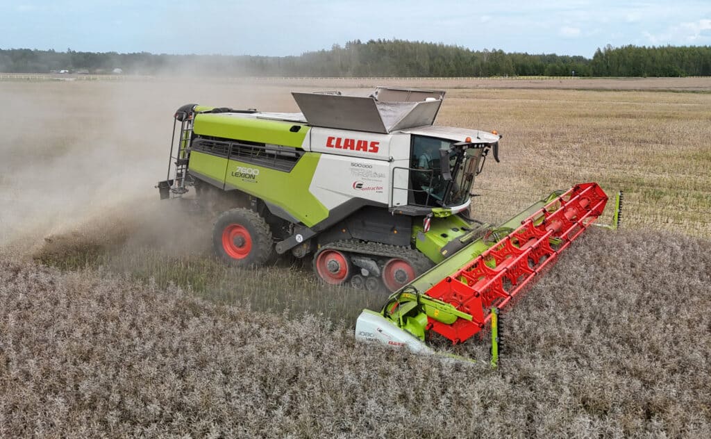 Akcja miała miejsce w pierwszej połowie sierpnia br. w powiecie hajnowskim na Podlasiu. Do zebrania był rzepak z 30 hektarowego pola, na którym występują gleby mozaikowe od IV do V klasy. Łan był równy, niezachwaszczony. Rzepak był optymalny do zbioru, bo miał od 8,5 do 9,0 procent wilgotności. Mierzył się z nim poruszający się na gąsienicach hybrydowy Claas Lexion 7600 Terra Trac wyposażony w heder Vario 1080 o szerokości cięcia 10,7 metra. To maszyna demo należąca do firmy Contractus Agro, która na początku naszej akcji miała przepracowanych ledwie 80 motogodzin. Aby ocenićsystem CEMOS AUTOMATIC postanowiliśmy wykonać dwie tury – każda licząca po dwa przejazdy. Zawsze w pierwszym przejeździe sami wykonaliśmy ustawienia podzespołów kombajnu i korygowaliśmy je w zależności od potrzeb. W kolejnym przejeździe pracowaliśmy z załączonym systemem CEMOS AUTOMATIC, porównując jednocześnie przejazd do przejazdu.