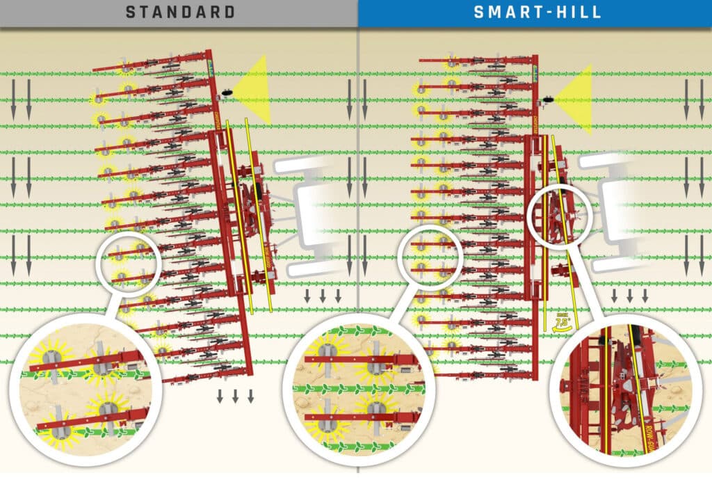 Dotychczas mechaniczne zwalczanie chwastów na pochyłym terenie było mało efektywne, bo dochodziło do zsuwania się ciągnika z maszyną. Pielnik ustawiał się względem rzędów roślin tak, że mógł nawet doprowadzić do ich uszkadzania. Właśnie z myślą o takich warunkach pracy powstał Smart-Hill, czyli system kompensacji nachylenia pielnika, opracowany przez firmy Einböck i Claas. W tym rozwiązaniu zamocowana na pielniku kamera o wysokiej rozdzielczości Claas Culti Cam analizuje informacje o kolorach oraz modele powierzchni 3D, aby precyzyjnie wykrywać nachylenie zbocza. Zintegrowany komputer przetwarza zebrane dane w czasie rzeczywistym i steruje dodatkowo zamontowaną osią obrotową za pomocą zaworu proporcjonalnego, tak że kompensowane są nie tylko odchylenia na zboczach, ale nawet przy dużych ruchach kierownicą.