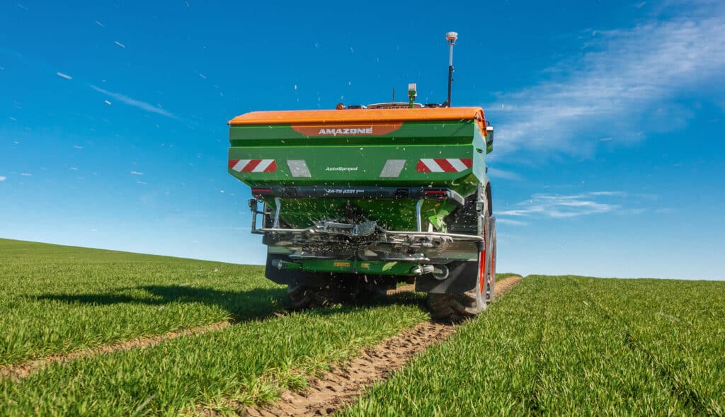 Nieprawidłowe ustawienie rozsiewacza może prowadzić do nierównomiernego wysiewu nawozu, co z kolei skutkuje zmniejszeniem plonów i utratą ich jakości. Firma Amazone opracowała rozsiewacz nawozów ZA-TS 01 AutoSpread, który sam się reguluje. Ta maszyna jest w stanie mierzyć rzeczywiste zachowanie nawozu w locie. Ocenia za pomocą radarów odległość wyrzutu granulek. Aby taki sprzęt ustawić do pracy nie jest już konieczne rozkładanie tac lub mat testowych. Zastosowany w nim system potrafi wygenerować obraz rozsiewania na żywo, który jest stale weryfikowany przez sztuczną inteligencję i porównywany z cyfrowym „bliźniakiem” z hali.