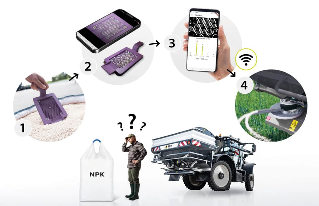 Precyzyjne nawożenie opiera się na wiarygodnej analizie nawozów. Od kilku lat zauważalna jest niejednorodność ich jakości. Dzięki FertiEye rolnik w kilka sekund uzyskuje bezpieczne ustawienia, gwarantujące optymalną jakość rozsiewu. Rozwiązania funkcjonuje tak, że w pierwszym etapie pobierana jest reprezentatywna próbka nawozu, która rozdzielana jest na cząstki. Następnie wykonywane jest zdjęcia tego rozdziału. Algorytm analizuje obrazy dokładnie mierząc cechy morfologiczne granulek: średnicę, kanciastość, rozkład, wielkości. Na podstawie tych danych obliczane są parametry, które za pośrednictwem Wi-Fi są przesyłane do rozsiewacza, który jest ustawiany do pracy. Narzędzie pozwala ponadto przewidzieć maksymalną możliwą szerokość rozsiewu osiągalną dla danego produktu. FertiEye umożliwia również ocenę jakości nawozu jeszcze przed jego zakupem.