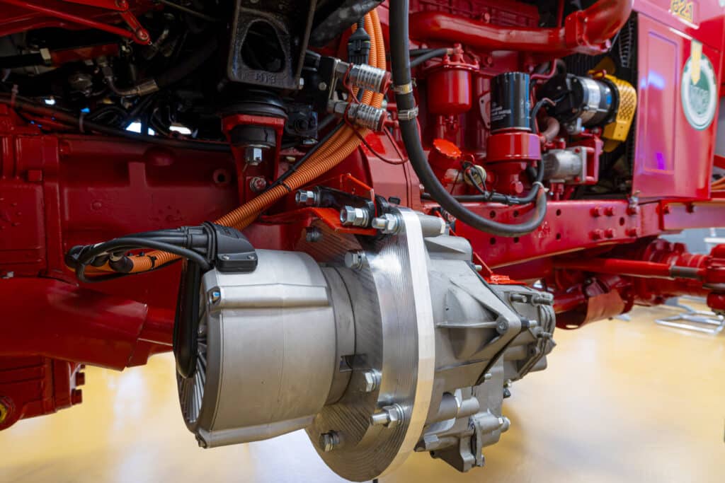 Do traktora dołożony został elektryczny silnik synchroniczny PMSM o mocy 30 kW, który czerpie energię z ośmiu baterii mających 180 Ah pojemności. Aby go wpiąć w maszynę wykorzystano dodatkową przekładnię. Układ został podłączony tak, że MTZ może teraz działać wyłącznie w trybie elektrycznym. Może również wykorzystywać duet elektryczno-spalinowy. Trzecia opcja to możliwość pracy w tradycyjny sposób, a więc wykorzystując osiemdziesięciokonny czterocylindrowy silnika diesla o pojemności 4,75 litra.
